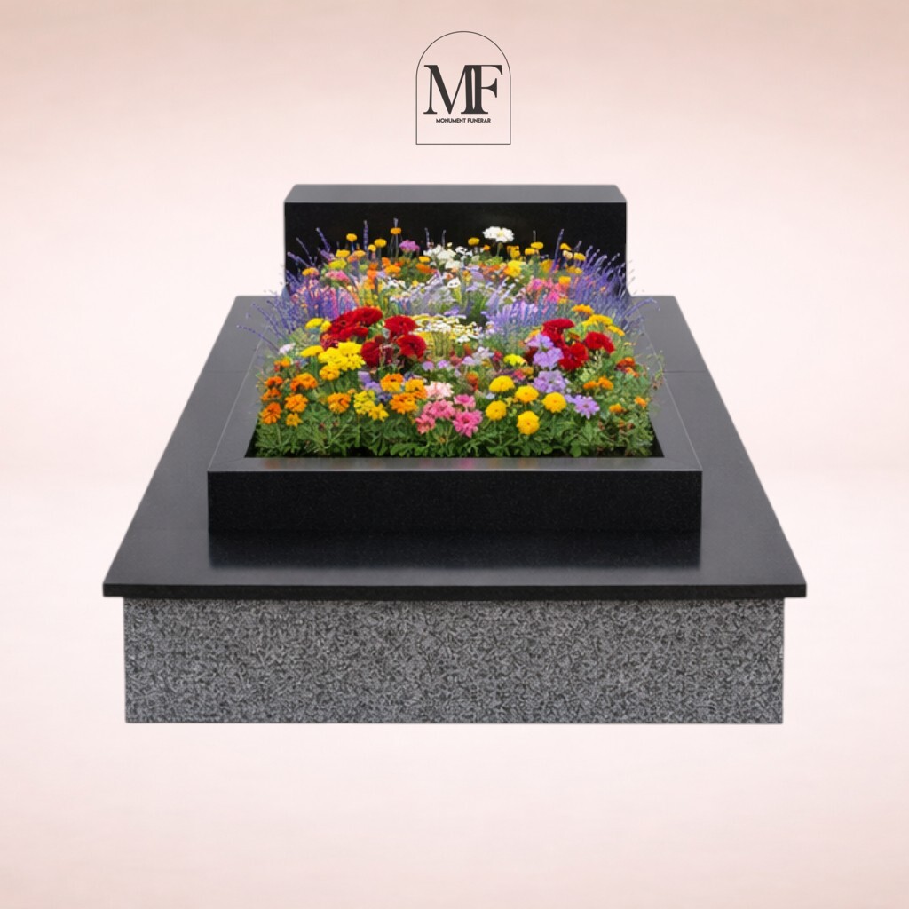 Fundatie din granitMonumente funerarePlacare din granit Gri combinat cu Negru